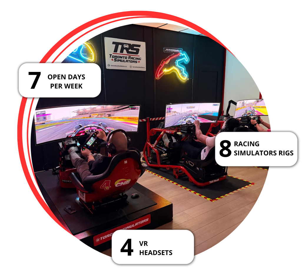 Enjoy 3 hours of pure sim racing competition at Toronto Racing Simulators, designed for groups who want maximum track time on professional racing simulators (No VR experience).
