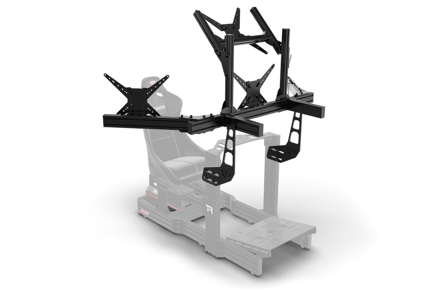 Trak Racer Black Anodized Aluminium Sim-Rig Integrated Quad Monitor Stand for 4 Monitors and TVs up to 45″