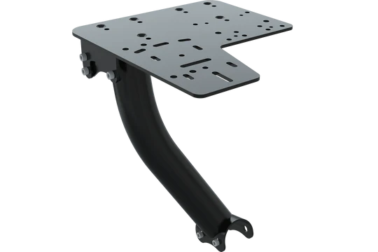 The Trak Racer Shifter Mount allows you to mount a shifter and handbrake side by side. Compatible with all top brands of shifters, handbrakes and other controllers. Painted in matte black. Adjustable handbrake mounting points. Consists of solid shift stem.