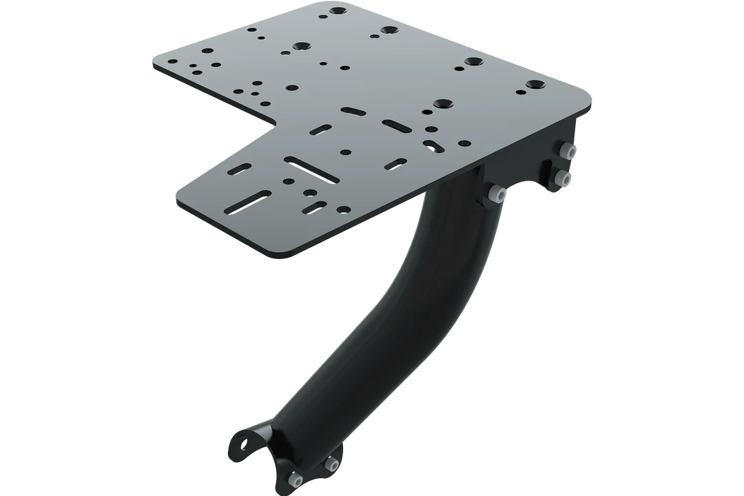 Shifter and handbrake upgrade mount mounts both left and right side of the chassis to have the shifter and handbrake side by side. Suitable for Trak Racer RS6 RS8 Mach 4/5/6 onwards and TR8 and TR8 Pro rigs (not suitable for aluminium extruded simulators).