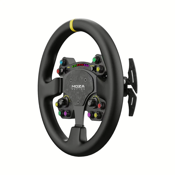 Designed for competitive sim racers and sports enthusiasts, the MOZA R9 V3 + RS V2 Bundle combines a powerful 9 Nm direct drive base with a premium forged carbon fiber and leather racing wheel. This setup delivers ultra-responsive force feedback, ergonomic comfort, and immersive RGB lighting—ideal for those who demand top-tier performance and style in GT, endurance, and touring car racing.