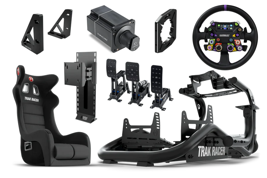 At Trak Racer, we’ve held nothing back in giving you the ultimate experience in all styles of simulation racing. Extensive research and design has lead to an end result of unsurpassed comfort complimented by an extremely ergonomic user experience. This Bundle has been diligently curated for the budget-conscious simulation racer who seeks a competitive edge on the track. We provide everything you need to get your feet on the pedals and hands on the wheel, you strap in and immediately dominate the track.
