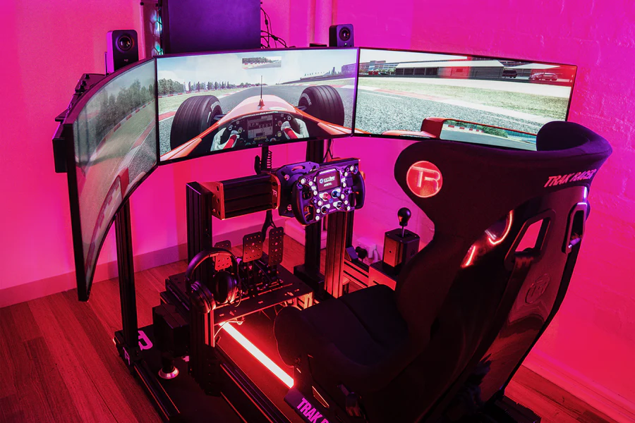 Elevate your sim racing game with Trak Racer’s plug-and-play simulators. Expertly curated for peak performance, our rigs feature premium components for the ultimate racing experience.