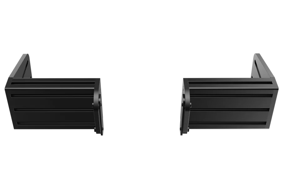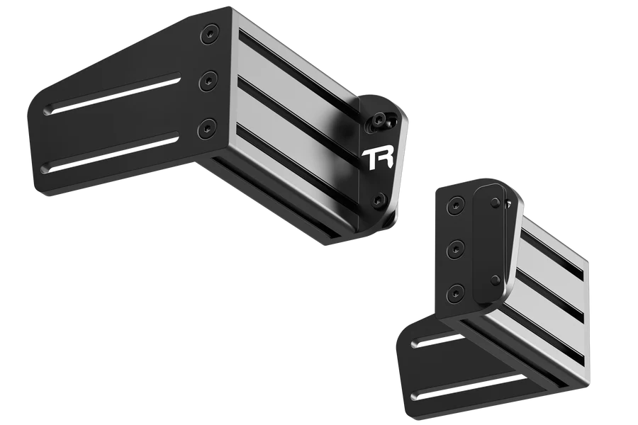 The design of the aluminium plates allows for angle and distance adjustment. The base kit (Part Number: TR80-NWMA) consists of 2 x High-Quality 80x40mm Aluminium Profiles and 4 Black Anodised Aluminium Plates. Optional wheel mounts include a wheel deck and direct-drive front mounting plate – but this list will expand as more wheelbase brands become available. The plates themselves are extremely rigid and have a lot of adjustment for angle and forward/backwards fine-tuning – to get a perfect position!