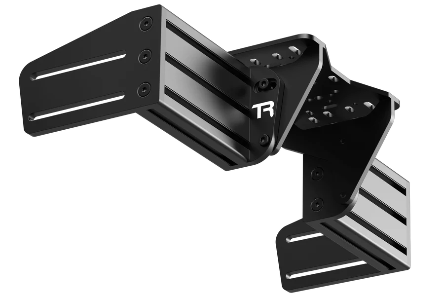The design of the aluminum plates allows for angle and distance adjustment. The base kit (Part Number: TR80-NWMA) consists of 2 x High-Quality 80x40mm Aluminium Profiles and 4 Black Anodised Aluminium Plates. Optional wheel mounts include a wheel deck and direct-drive front mounting plate – but this list will expand as more wheelbase brands become available. The plates themselves are extremely rigid and have a lot of adjustment for angle and forward/backward fine-tuning – to get a perfect position!